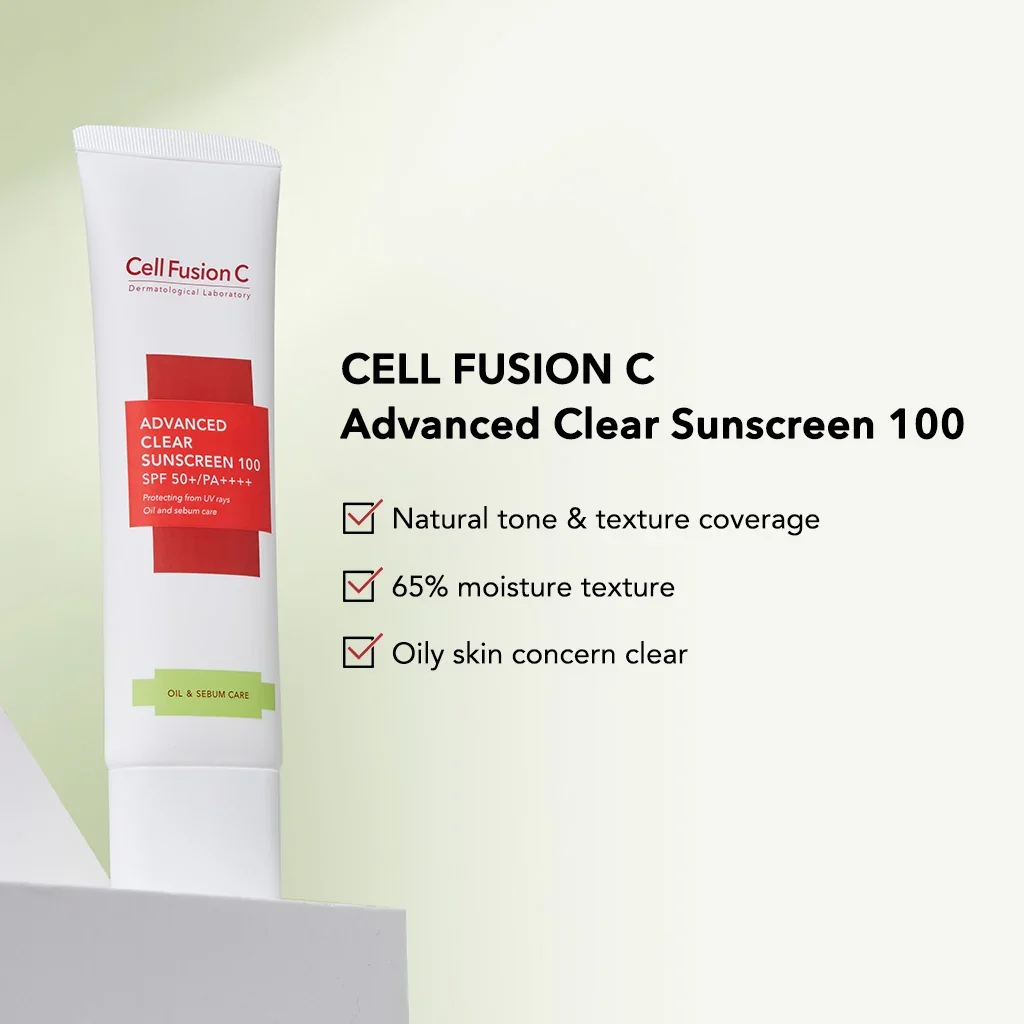 Cell Fusion C Advanced Clear Sunscreen 100 SPF50+/PA++++ is a sunscreen that covers the skin from tone to texture as if applying a moisture primer.