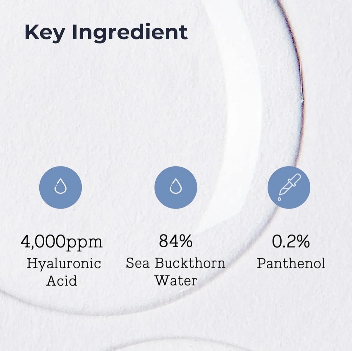 Hippophae Rhamnoides Water, Butylene Glycol, Glycerin, 1,2-Hexanediol, Sodium Hyaluronate, Panthenol, Ethyl Hexanediol