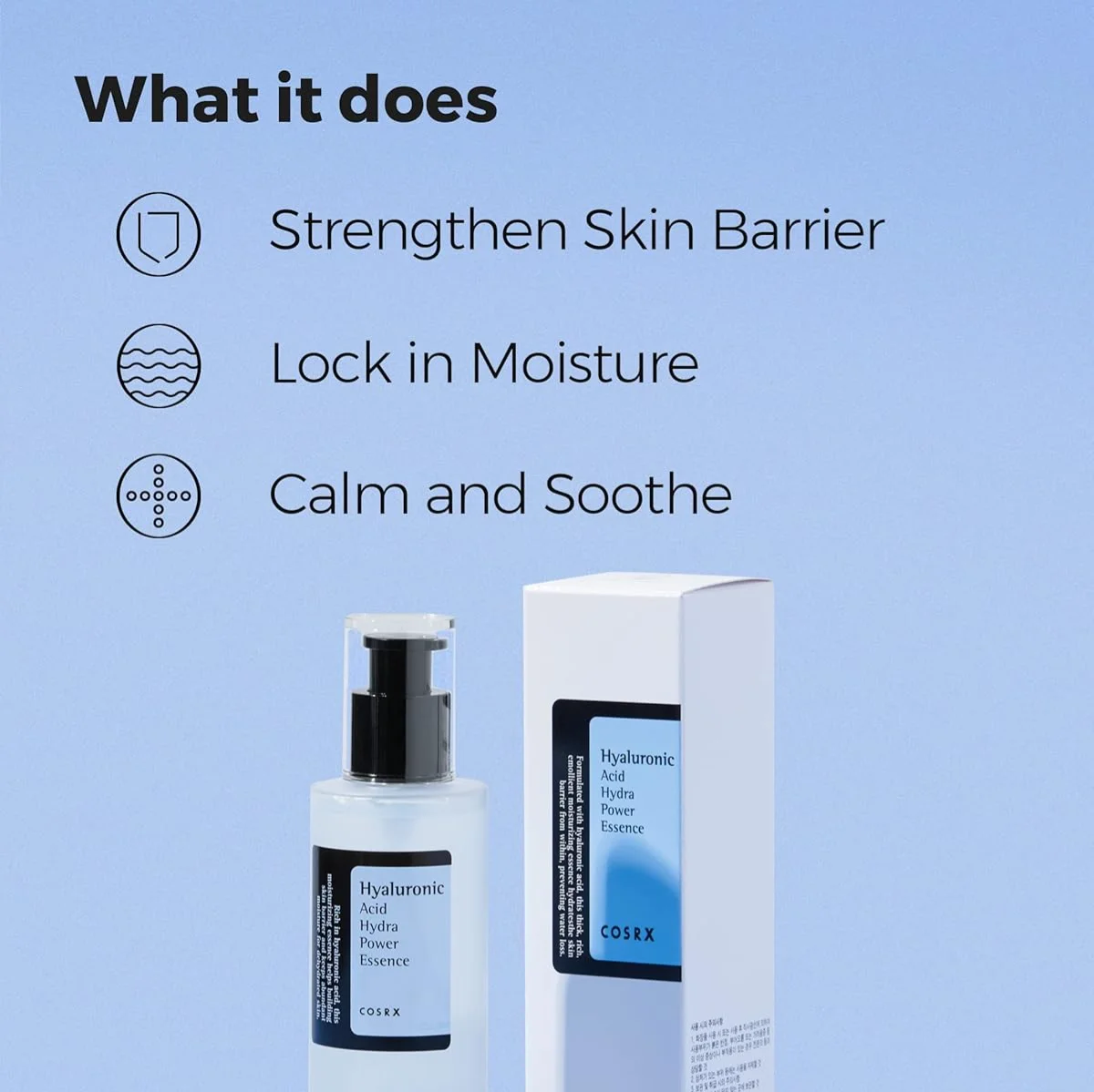 The combination of sea buckthorn water (Hippophae rhamnoides) and 4,000ppm of sodium hyaluronate in this essence give skin a massive boost of moisture-retention power. The sea buckthorn contains fatty acids that protect cells from damage and stress.