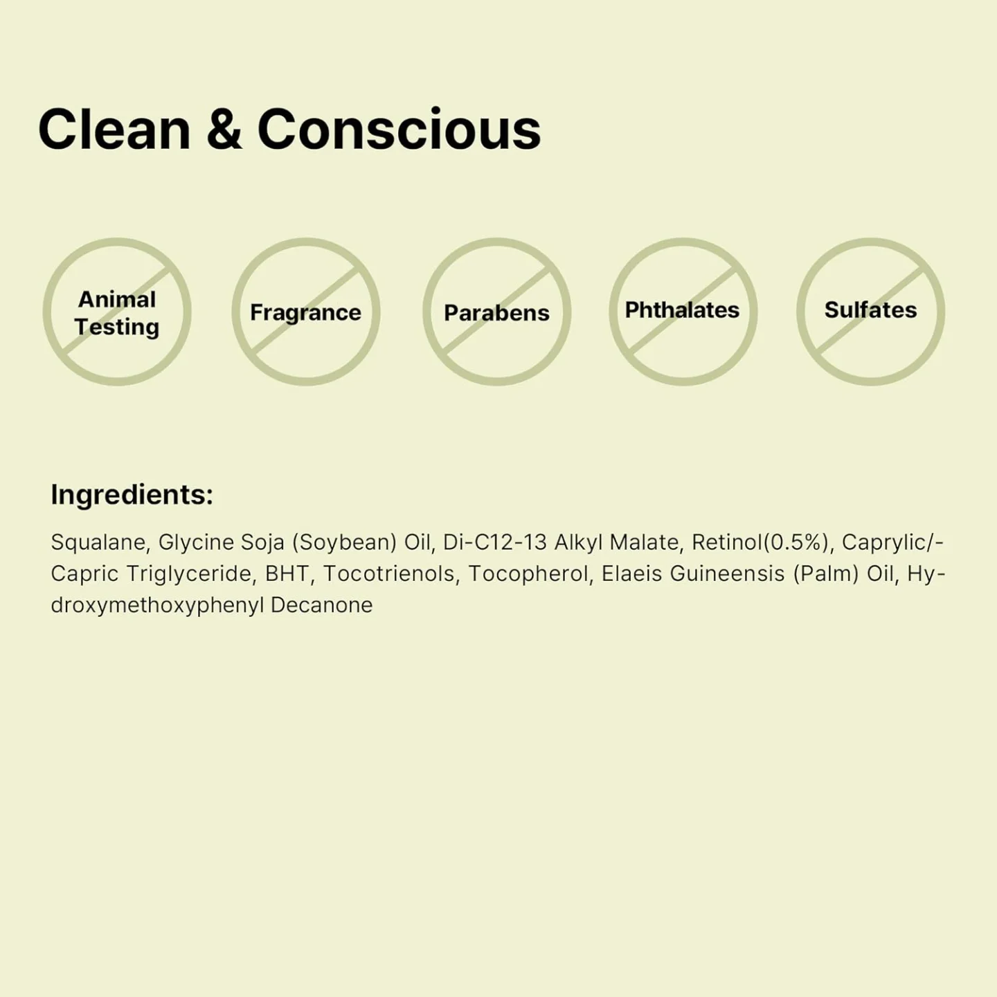 A facial oil infused with 0.5% retinol to replenish your skin.