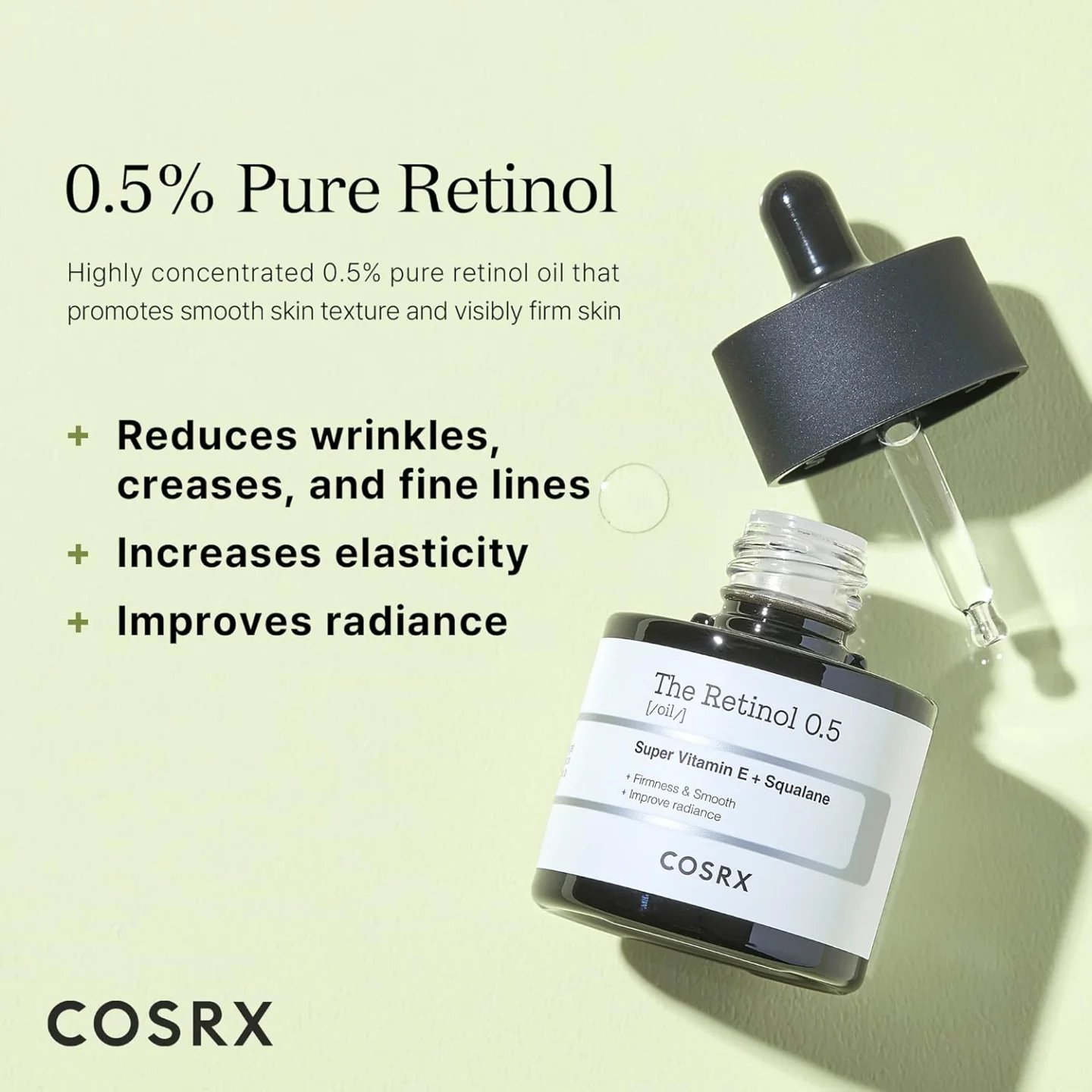 Contains active ingredients including pure retinol, squalane, and tocotrienol.