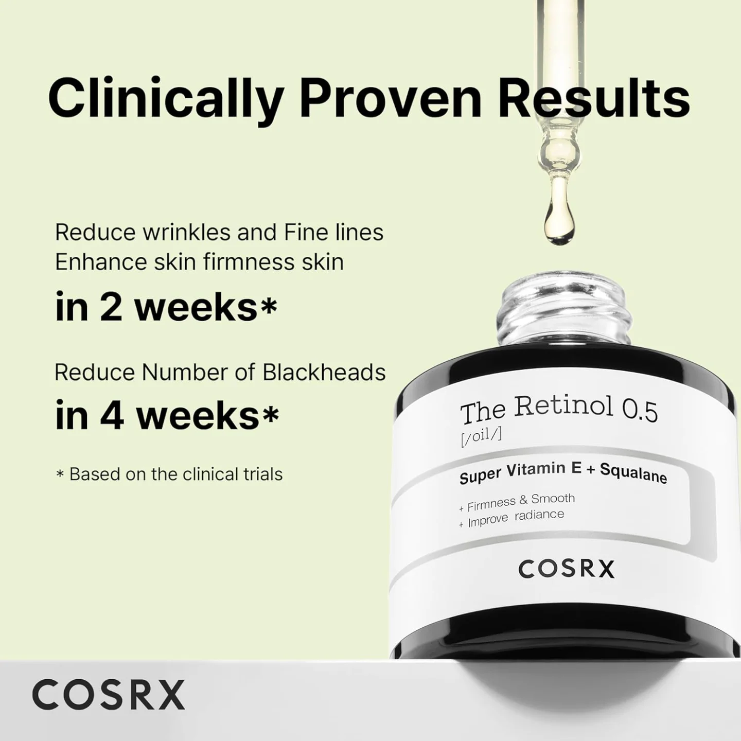 Treat lackluster, dry and aging skin with this multi-tasking facial oil infused with 0.5% retinol to raise moisture levels, soften wrinkles and combat breakouts. The formula is also packed with squalane to tamp down irritation, and tocotrienol (a form of Vitamin E) to fend off free radicals. Ease into the product by applying no more than three times per week for the first two weeks of usage. Start using every other day from the third week onwards. Avoid daytime use. Pair with COSRX’s The Retinol 0.1 Cream for optimal results.