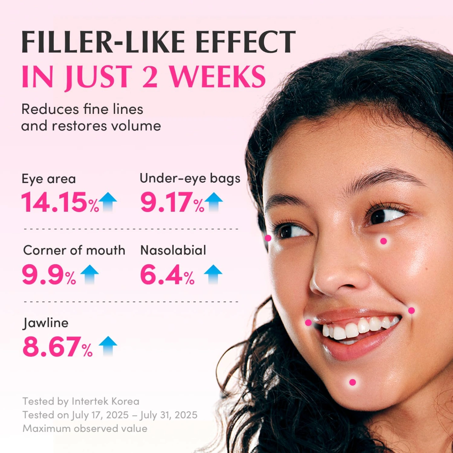 ✔️ Vegan collagen deeply penetrates the skin, providing a plumping effect and a healthy glow