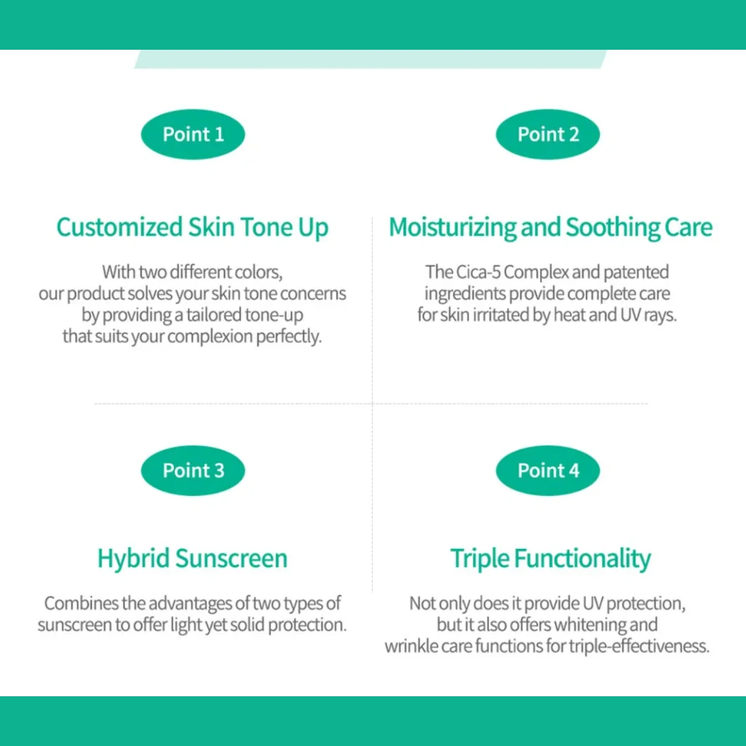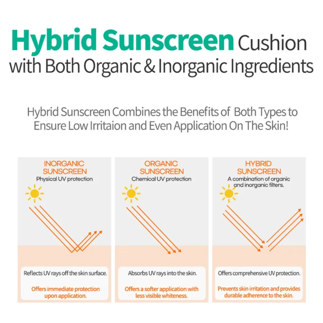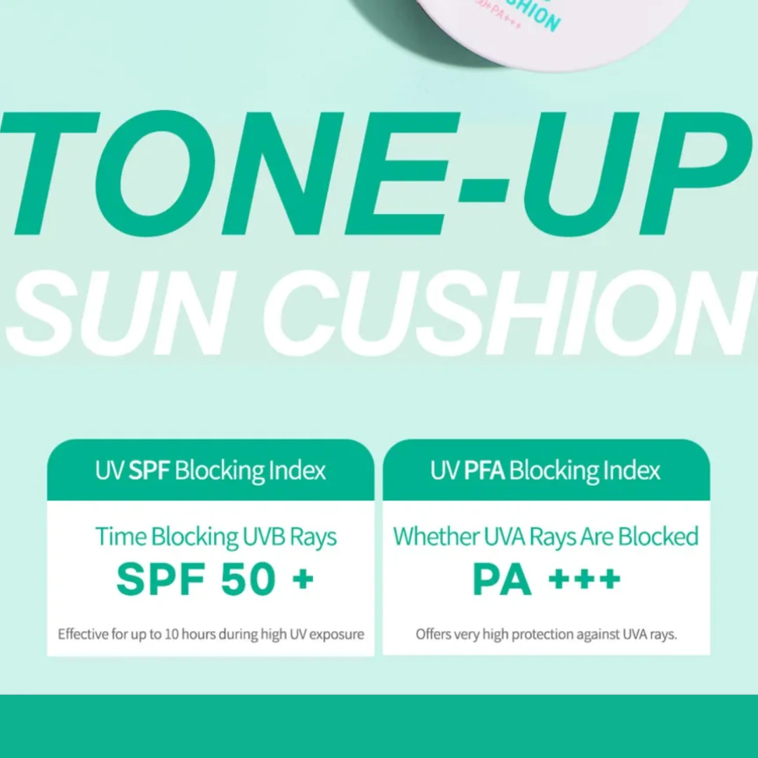 A hybrid sun cushion with a broad spectrum SPF50+ PA+++ that protects the skin from UV rays and help tone up the skin for a radiant complexion at the same time.
