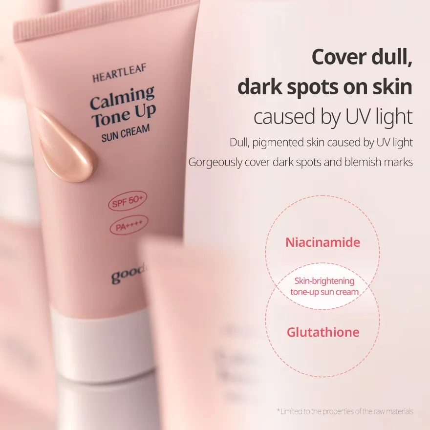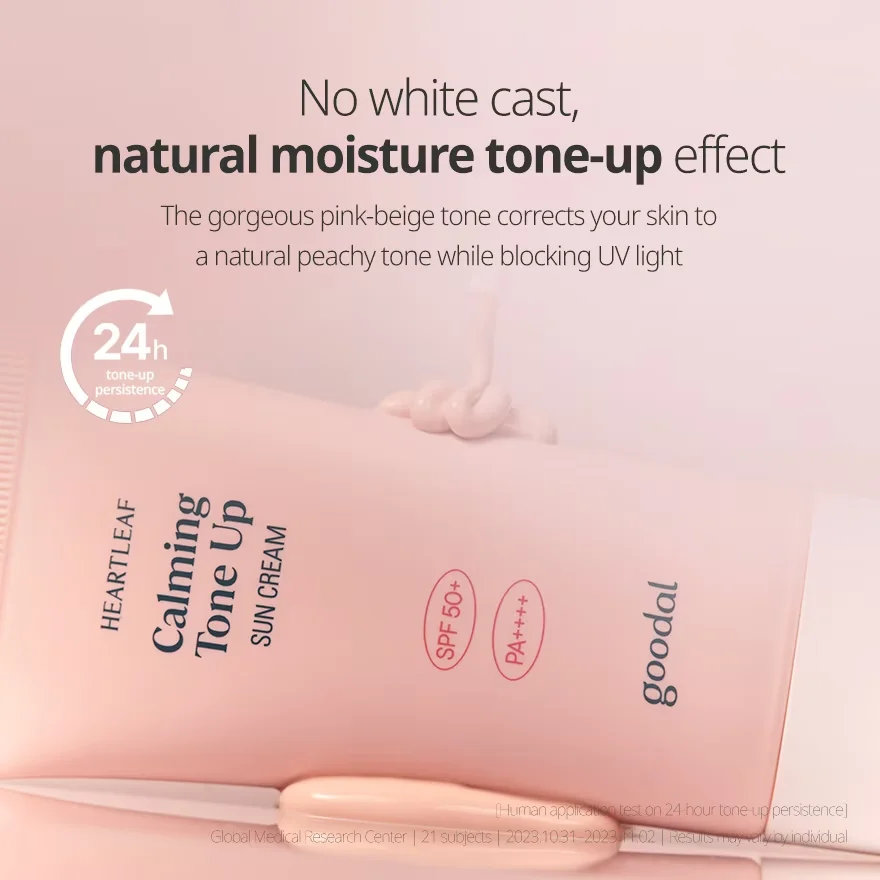 A vegan tone-up sunscreen enriched with Heartleaf extract offers SPF 50+ PA++++ sun protection and instant pinkish tone-up effect.