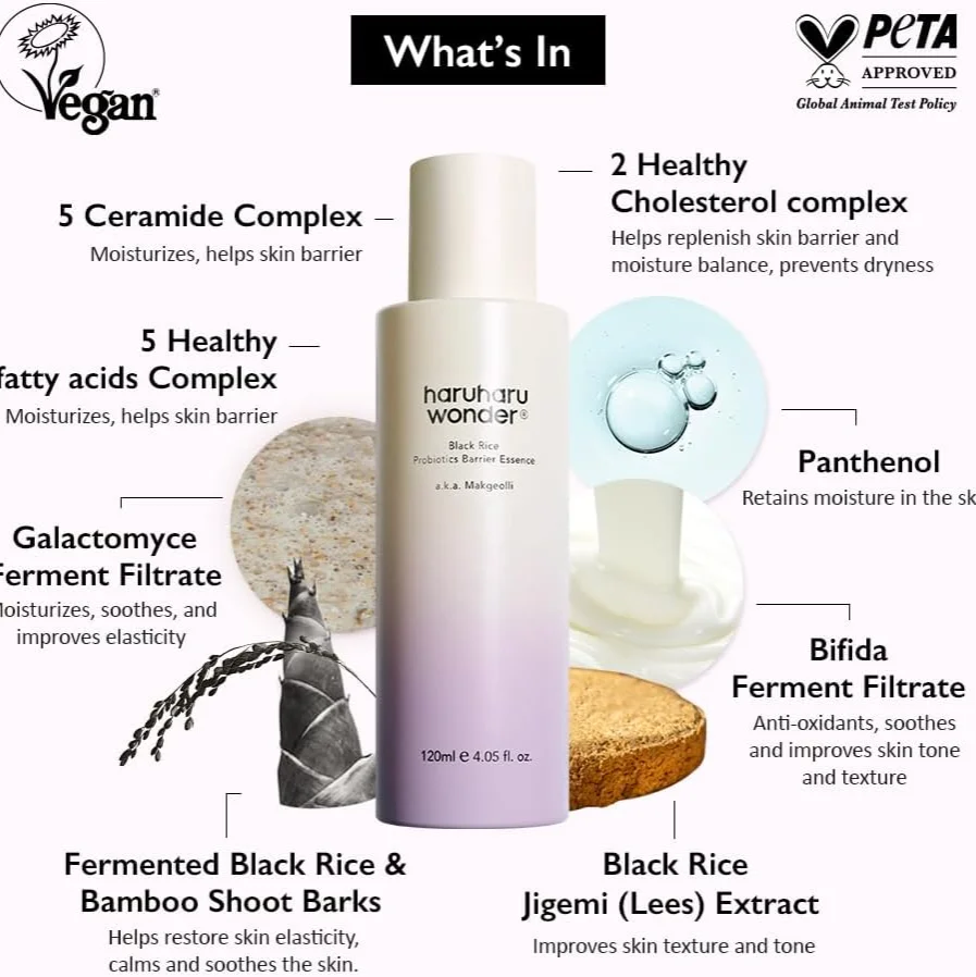 Contains 3 essential lipid components, ceramides & cholesterol & fatty acids in a 3:1:1 ratio for a firm skin barrier - Combination of black rice and probiotics (galactomyces fermented filtrate, bifida fermented filtrate) and creamy formulation reminiscent of rice wine (shake well before use to mix contents)