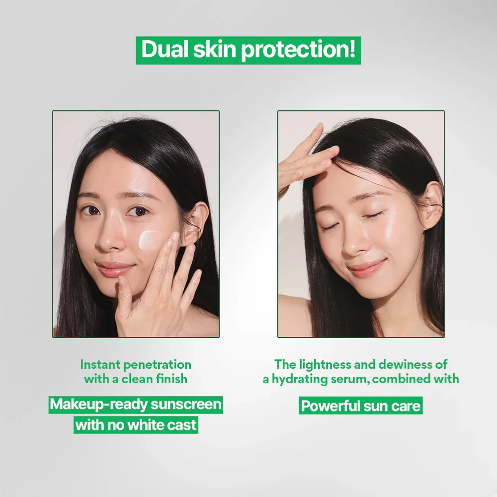 Infused with Jeju green tea extract, hyaluronic acid and niacinamide, this serum-like sunscreen works to refine texture and lock in moisture. Boasting a weightless texture, this daily staple sits comfortably over skin and underneath make up. What's more, expect its broad spectrum formula to protect your complexion from UVA and UVB rays come rain or shine.