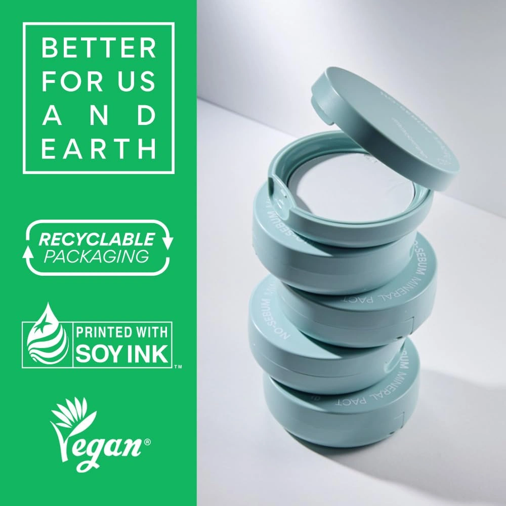 A vegan finish powder pact for oily skin complex, absorbs and controls excessive sebum of the skin.