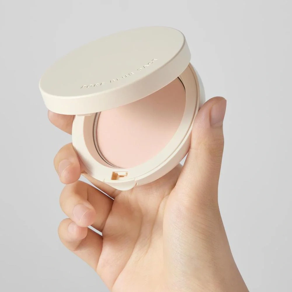 This pink powder pact blurs the look of pores for a fresh, airbrushed complexion.
