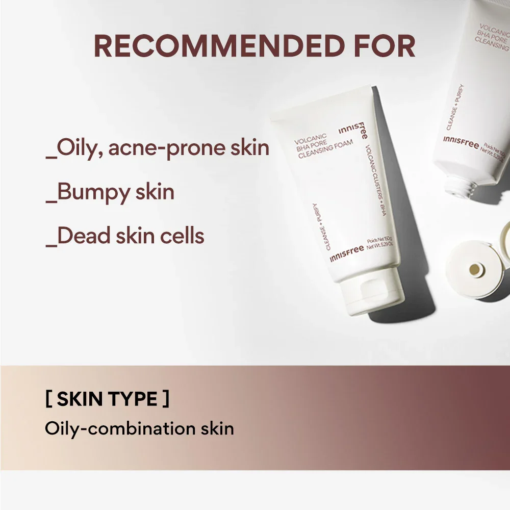 Jeju Volcanic Cluster™ helps absorb excess sebum and skin impurities while BHA helps remove dead skin cells clogged in pores.