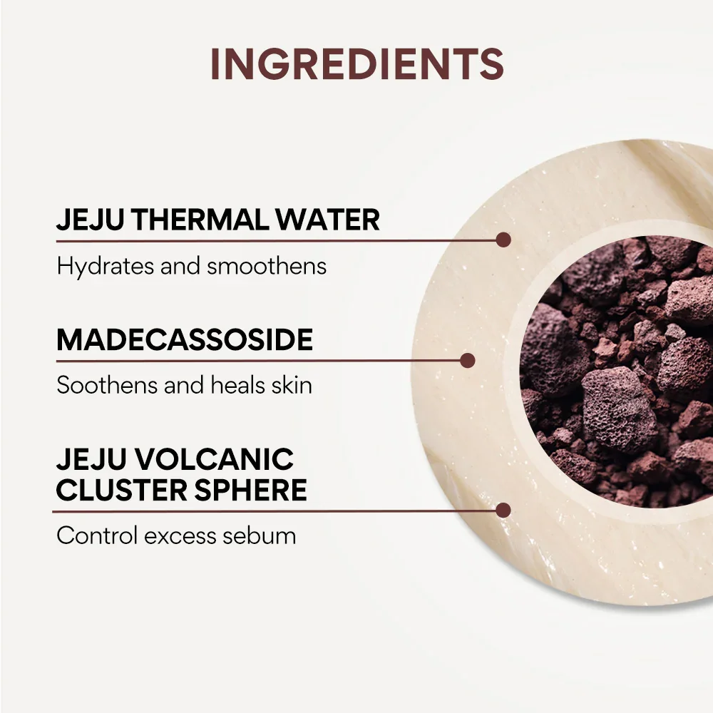 Infused with Jeju Hot Spring Water and Madecassoside for soothing acne-prone skin and sensitive skin.