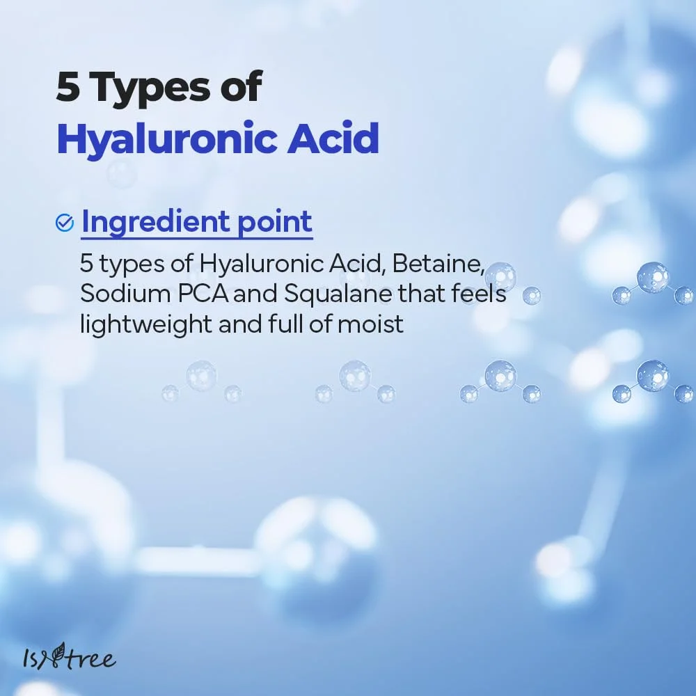 Infused with 5 kinds of concentrated hyaluronic acids to provide intense hydration to your skin.
