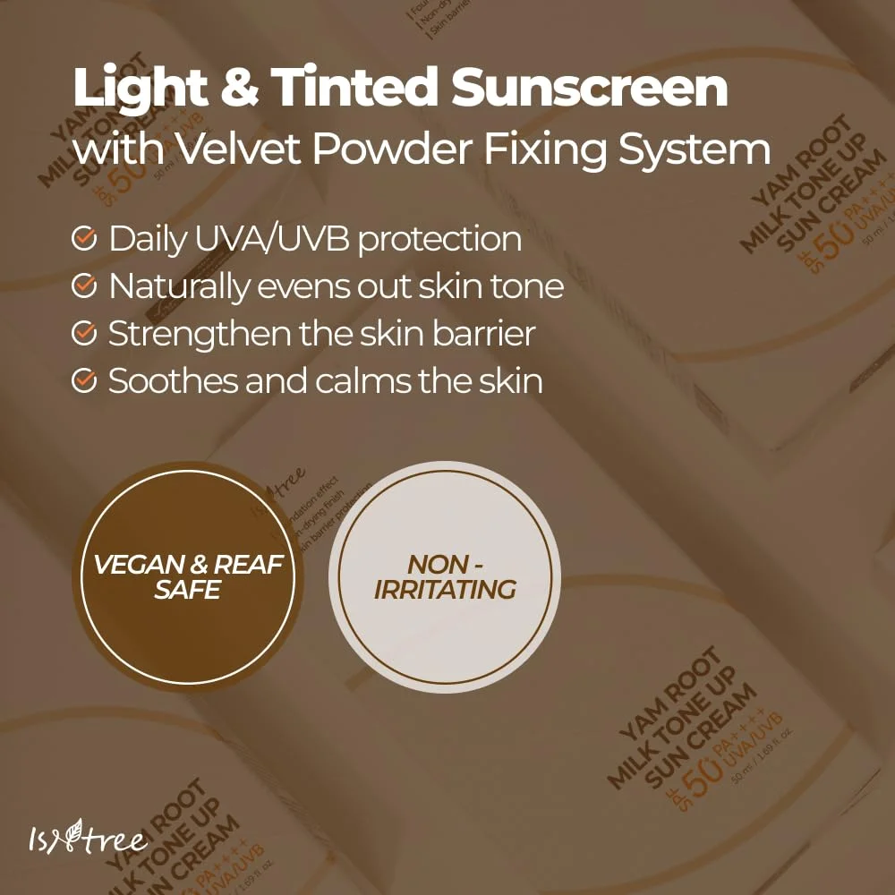 Fend off UV rays with this mineral sunscreen offering SPF50 PA++++ sun protection. The cream-type formula combines yam root extract with panthenol to keep skin moisturized, while plant-based mucin and Vegan Milk Complex help strengthen the skin barrier. Enriched with brightening agent niacinamide and coming in a beige-tinted color, the sunscreen provides a tone-up effect for radiant results.