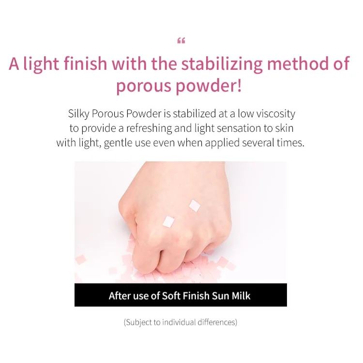 Silky Porous Powder Creates a Smooth Base: Silky Porous Powder stabilized in a low viscosity fluid provides for lightweight, smooth application; no discomfort, even when layered.