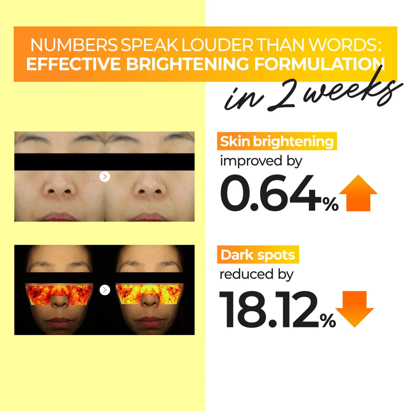 Contains 20,000ppm of Madewhite™ which includes Centella Asiatica Extract that helps brightening and soothing the skin at the same time.