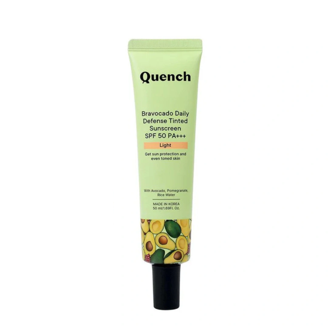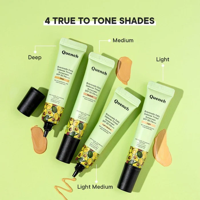 A. Our Bravocado Daily Defense Tinted Sunscreen SPF 50 PA+++ is a skincare + makeup hybrid product that offers sun protection, even-toned skin along with skincare benefits. It is non-greasy, non-sticky, does not leave behind a white cast and absorbs quickly into skin. It can be worn every day, as a last step in your AM skincare routine.
