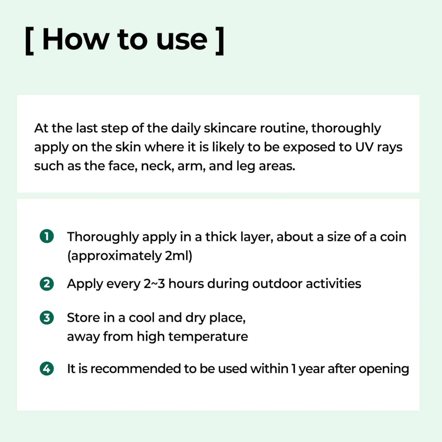 Apply a proper amount on the face and other body parts that might expose under sunlight evenly.