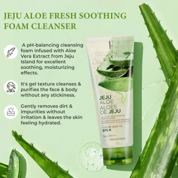 Jeju Aloe Fresh Soothing Cleanser - Dispense a small amount of the cleanser onto the palms & massage all over the face in circular motions