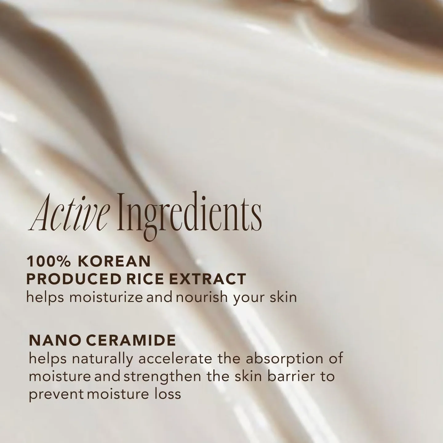 Intensely moisturizing cream packed with rice extracts, rice bran oil, nano ceramide water and vegetable rice ceramide