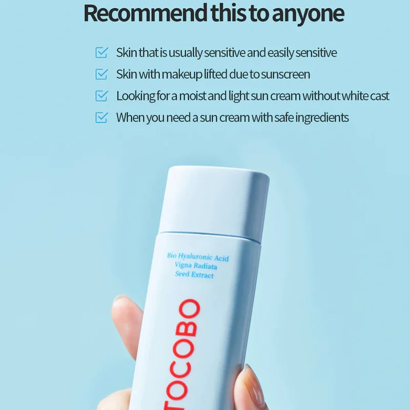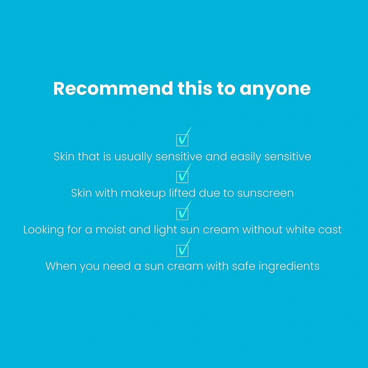 This SPF 50+ PA++++ sun cream in a chemical formula leaves a natural, white cast-free finish. It contains 1,000ppm of mung bean extract to soothe irritation and tackle blemishes, along with 1,000ppm of bio-hyaluronic acid to boost skin moisture. Vegan and cruelty-free formula is hypoallergenic. It works well under makeup.