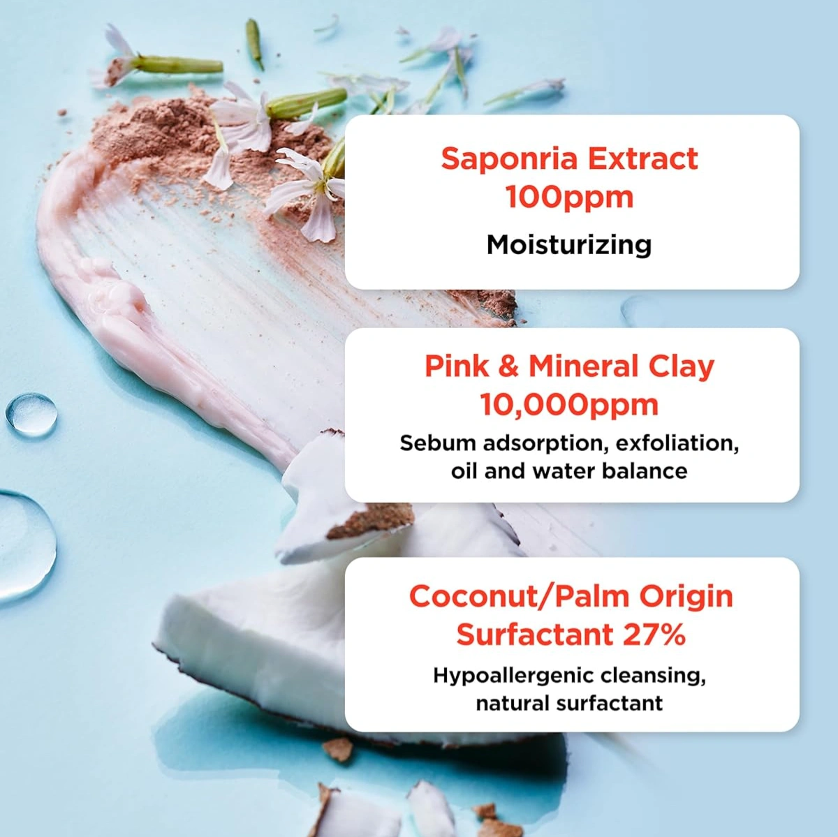 The combination of Pink and White Mineral Clay acts as an exfoliator to remove dead skin cells and impurities.