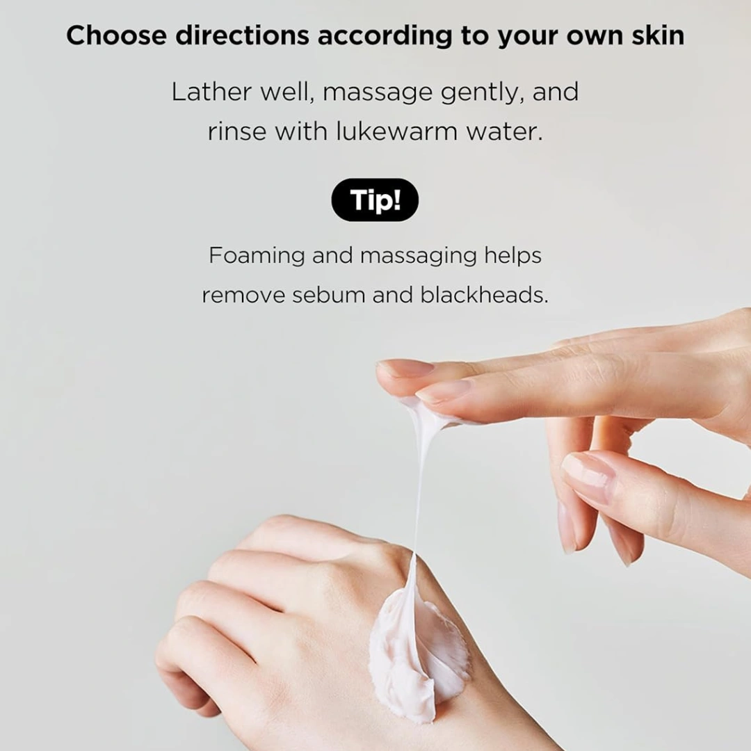 Squeeze a coin-sized amount of the cleansing foam on dampened palms to lather. Gently massage while applying on your face, and rinse thoroughly with lukewarm water.